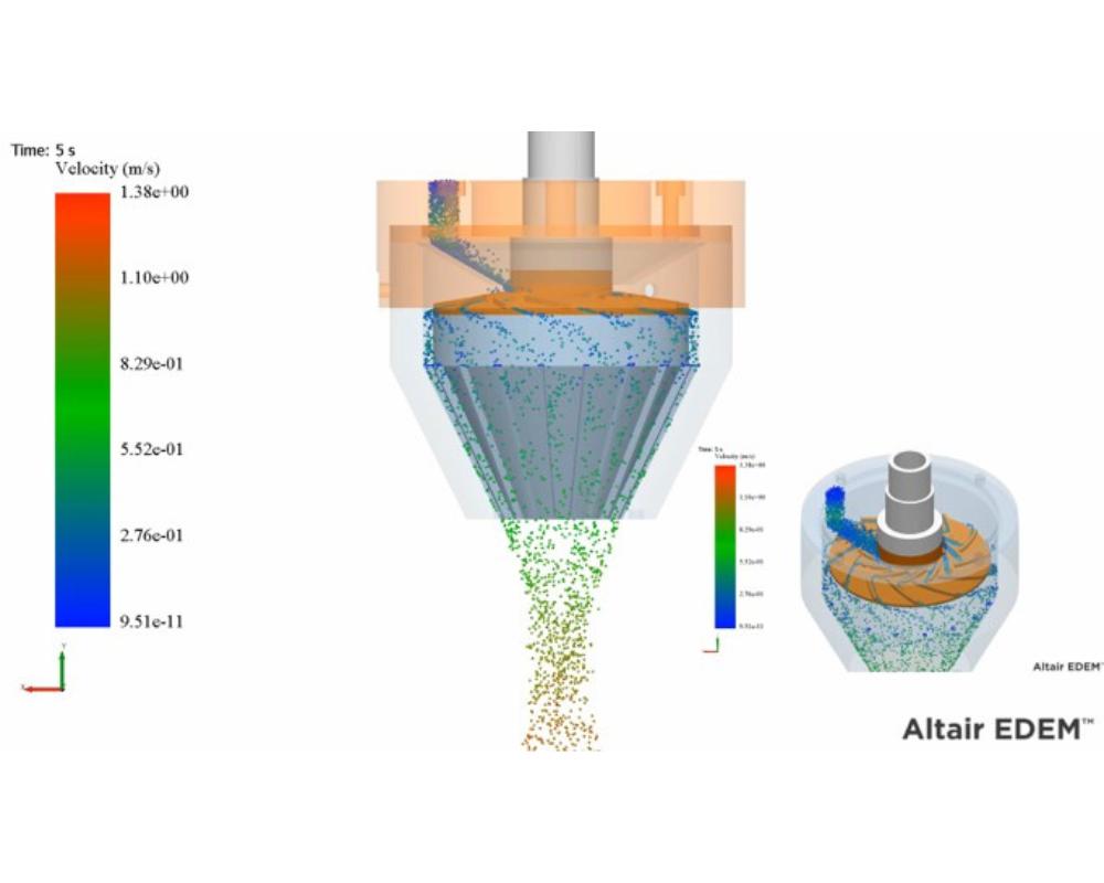 EDEM provides fast, parallelized 3D visualizations of the bulk particle system including cutaway views